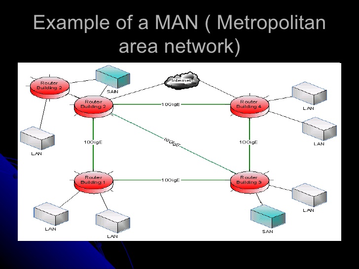 A Metropolitan Area Network (MAN) is a network that is covered by a large local area network (LAN) with geographical area or computer, but is smaller than the area covered by the wide area network (WAN).